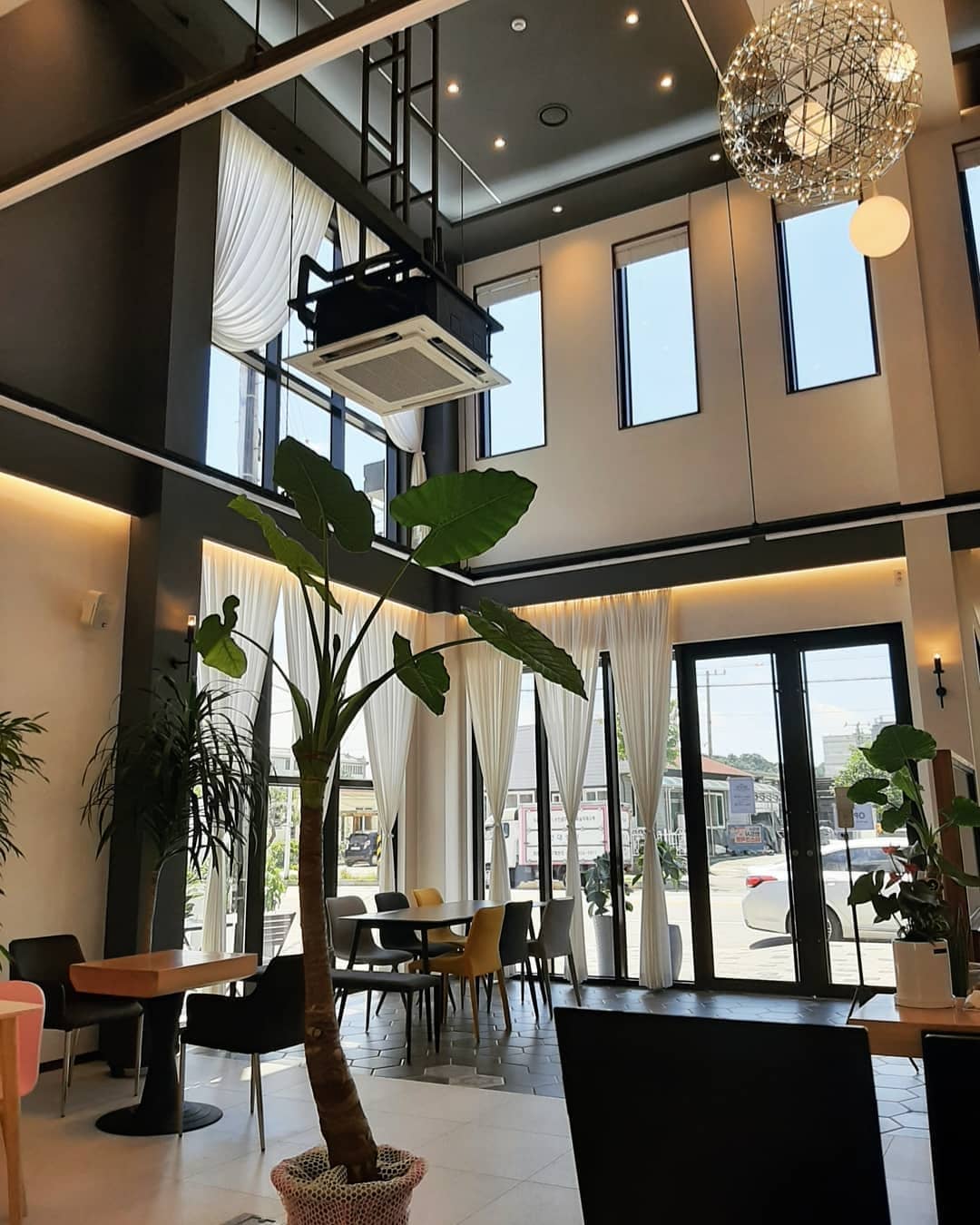It is a cafe with a small garden, where sunlight comes from a large window and you can feel the warmth. It is a good place to sit by the window and have a cup of coffee with warm sunlight.
